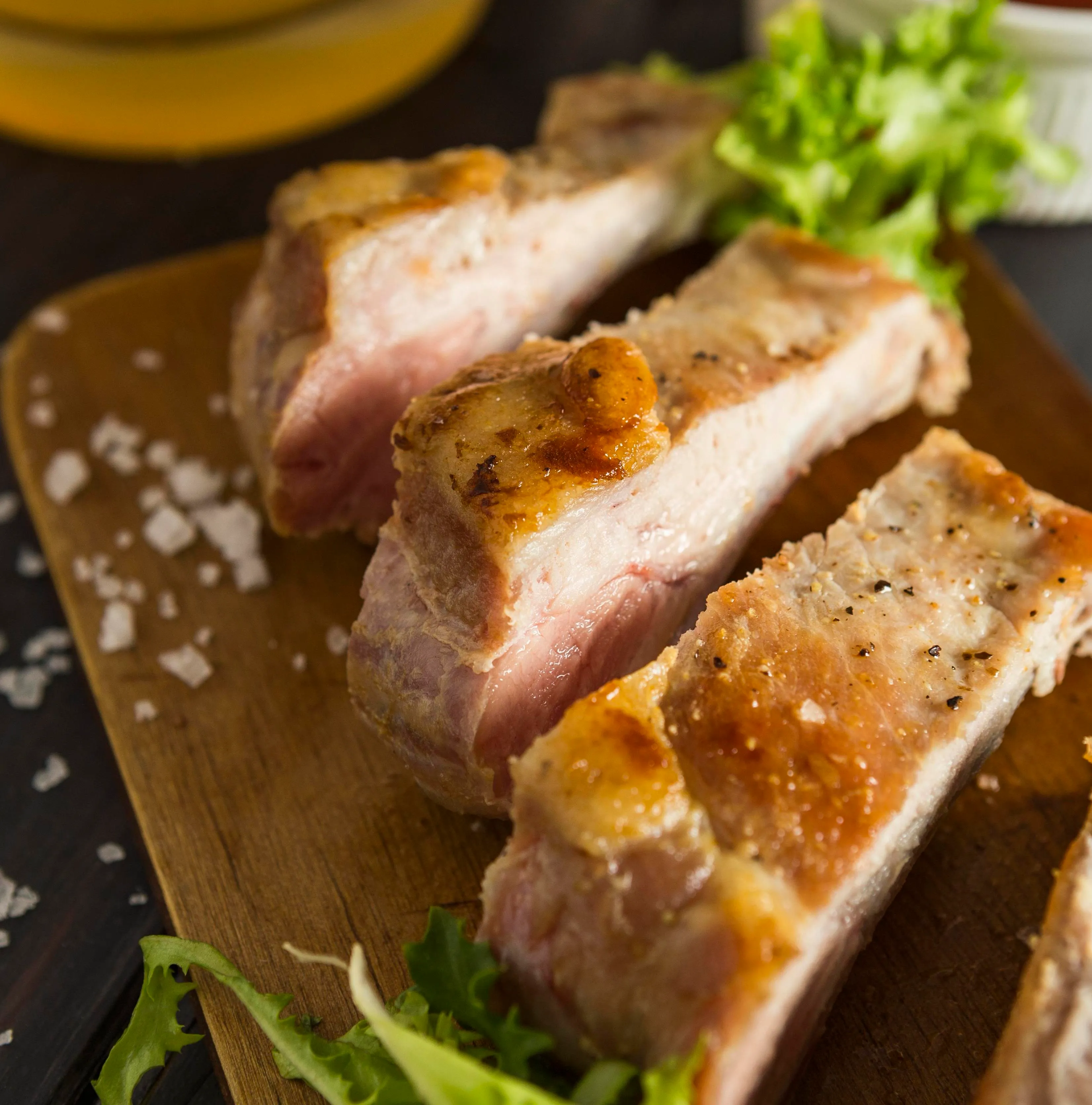 El centro de la mesa. Marinados con chiles secos, ajo, especias y jugo de naranja, se hornean lentamente hasta lograr una textura jugosa y profunda. Se acompañan con puré de papa o arroz rojo, creando un balance entre potencia y confort.