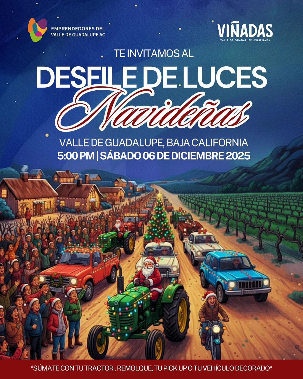 Valle de Guadalupe se vestirá de luz y alegría con nuestro Gran Desfile de Luces Navideñas.
