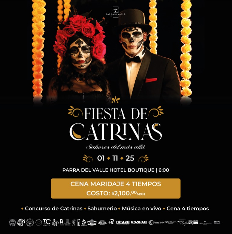 ✨ Una noche donde la vida y la muerte se encuentran en un mismo brindis ✨ Este 1 de noviembre el Valle se viste de misticismo con la Fiesta de Catrinas · Sabores del Más Allá. Prepárate para cruzar el umbral hacia una experiencia inolvidable. ✨ Reserva hoy tu lugar y sé parte de esta celebración única. 📍 Parra del Valle Hotel Boutique – Valle de Guadalupe 🗓 01 de noviembre | 6:00 PM